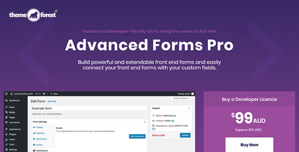 On top of that, Advanced Forms Pro offers even more features for advanced use cases. You can purchase a license through Hookturn which can be used on an unlimited number of sites.