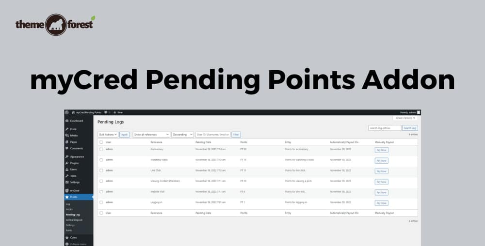 myCred Pending Points Addon Features: