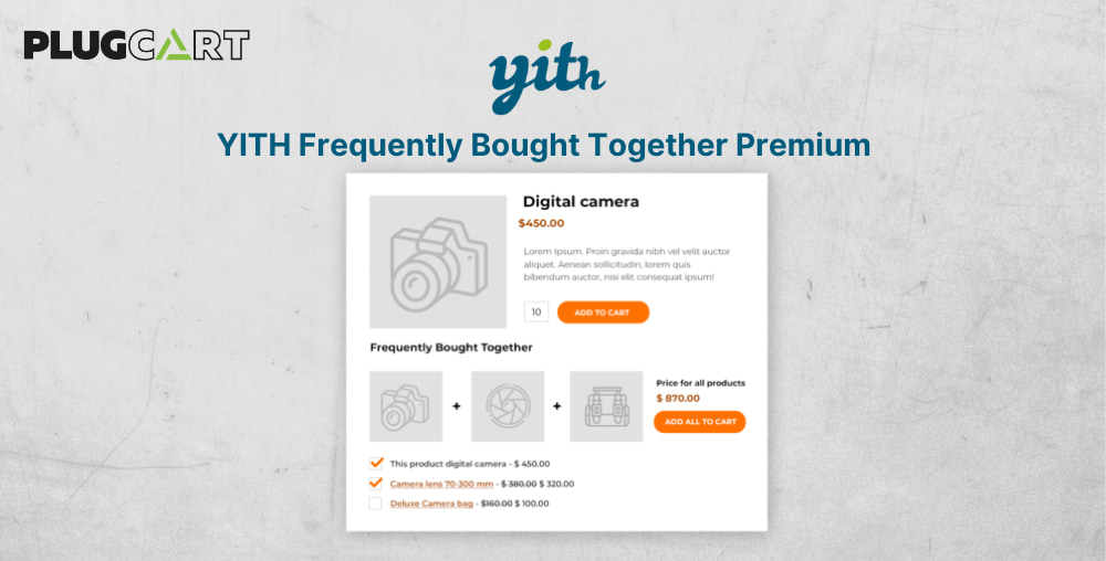YITH WooCommerce Frequently Bought Together Premium increase sales showing a section to suggest items usually bought together with the product watched by your customer. you will take advantage of the social proof strategy to encourage users to purchase the products usually bought by other customers and therefore increase the average value of the order.